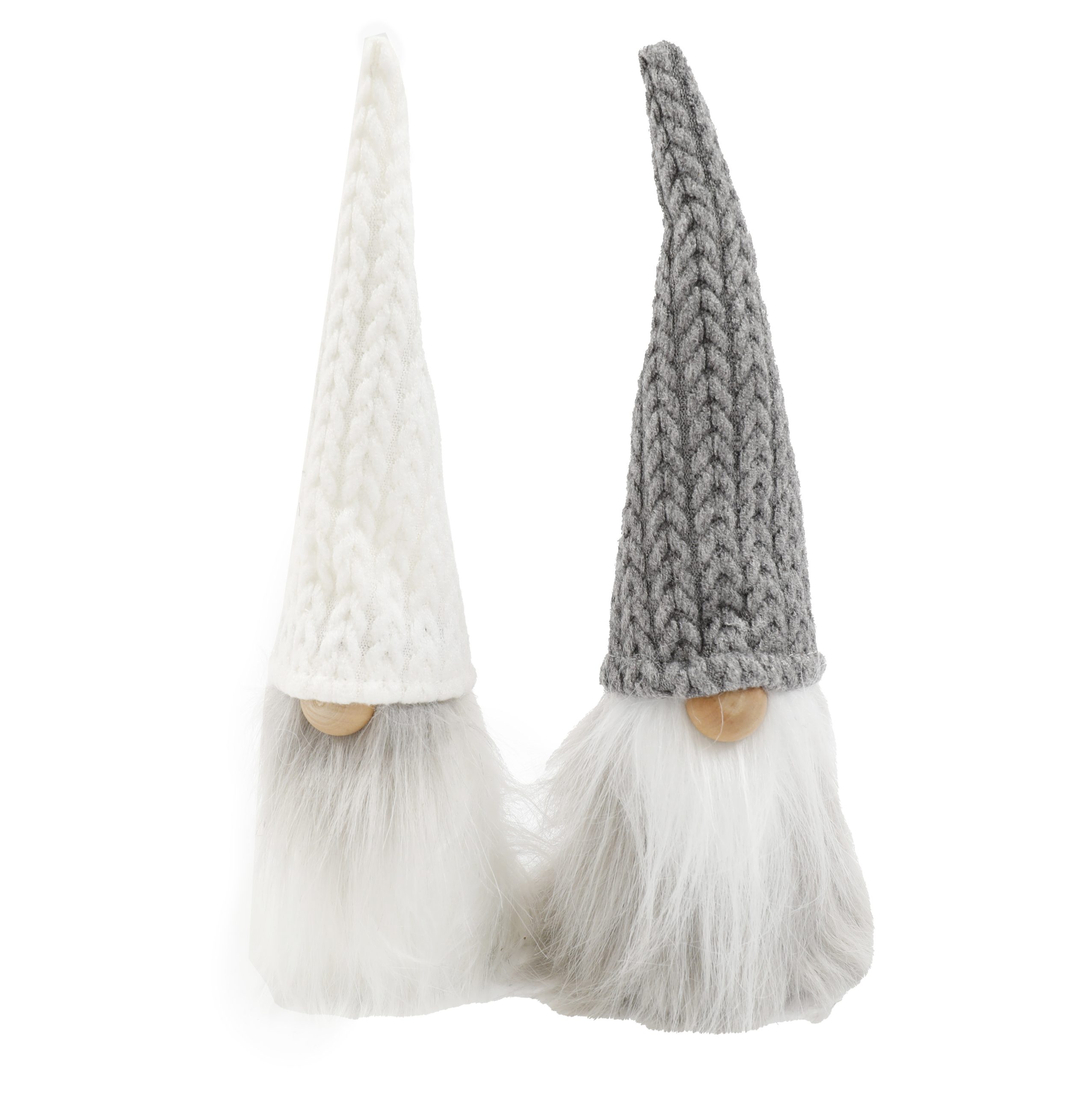 This white knitted hat gonk features a cosy, textured design with a soft, fluffy beard and a classic round nose. Its charming, festive look adds a touch of warmth and whimsy to holiday décor.