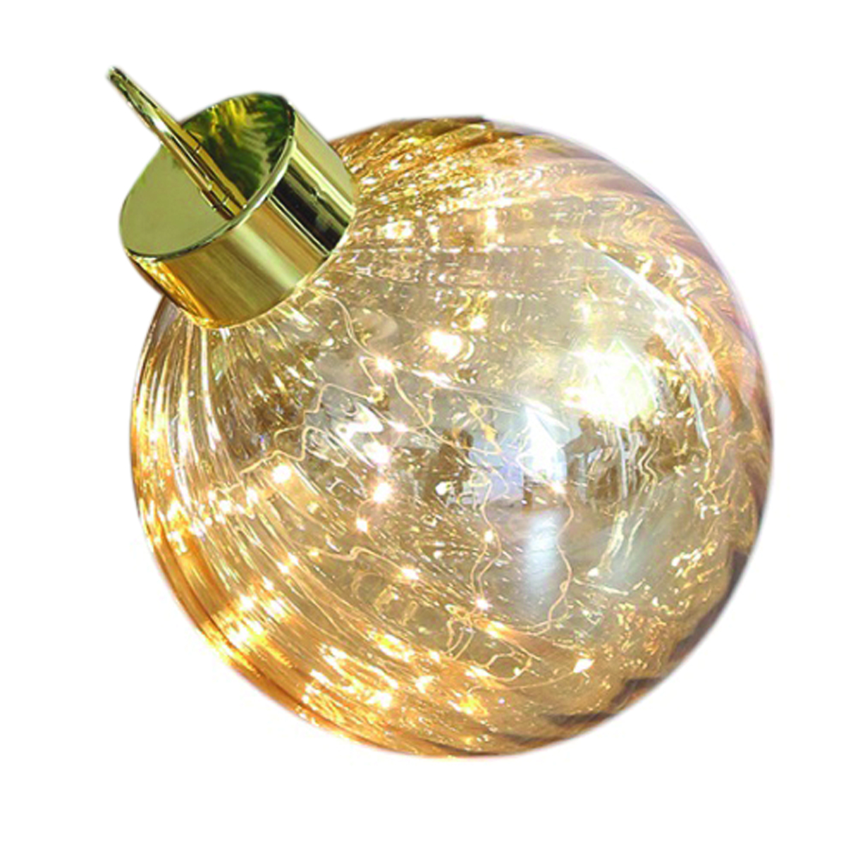 Bring a magical glow to your festive decor, with this gold glass bauble. Sparkles with twinkling LED lights, creating a warm and whimsical atmosphere. Perfect for brightening any room or tree, it adds a playful touch of charm that delights both young and old alike.