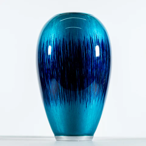 A beautiful designed vase that is a stunning addition for a centre piece for the kitchen or the living room. The translucent colour gives a rich and deep look, through to the recycled aluminium beneath. The outside is highly polished. Please note it is hand wash only