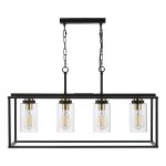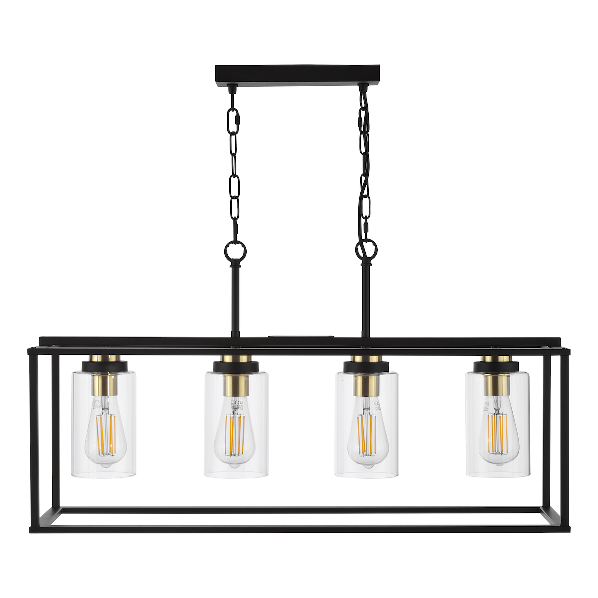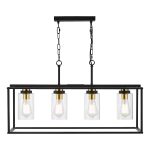 Illuminate your kitchen island with industrial flair using the Auren 4 Light Bar Pendant. This striking fixture marries satin black metal with clear glass cylindrical shades, accented by antique brass details for a touch of warmth. The modern industrial design of this bar pendant makes a bold statement in any space, while its chain suspension system allows for flexible hanging heights. For an extra dose of vintage charm, pair it with our selection of Edison-style bulbs. Whether you’re after kitchen lighting with an edge or simply fancy adding some industrial chic to your home, this versatile pendant is sure to cast your space in a whole new light.