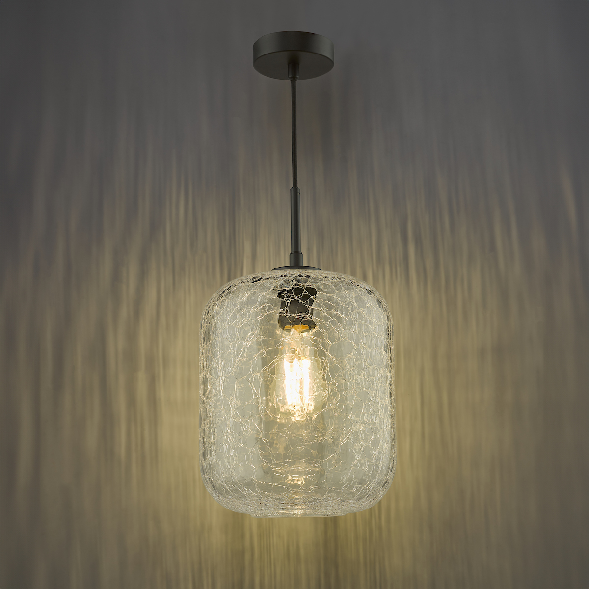 The Tavirah Pendant in matt black pairs bold modern styling with timeless glasswork. Its clear crackle glass shade scatters light with striking texture, while a luxury braided cable offers height adjustability for both high and low ceilings. Perfect for kitchens, dining areas, hallways, stairwells or living spaces, it provides strong illumination with a sculptural presence that complements both classic and contemporary interiors.
