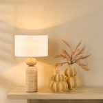 The Selune Table Lamp is crafted from natural travertine stone, chosen for its warm honeyed tones and unique colour variations that make each piece one of a kind. Carved into a modern cylindrical form with a subtle ball-neck detail, it comes complete with a white linen shade that enhances its natural beauty with soft, diffused light. Perfect for living rooms, bedrooms, or hallways, the Selune brings harmony, texture, and understated luxury to any interior.